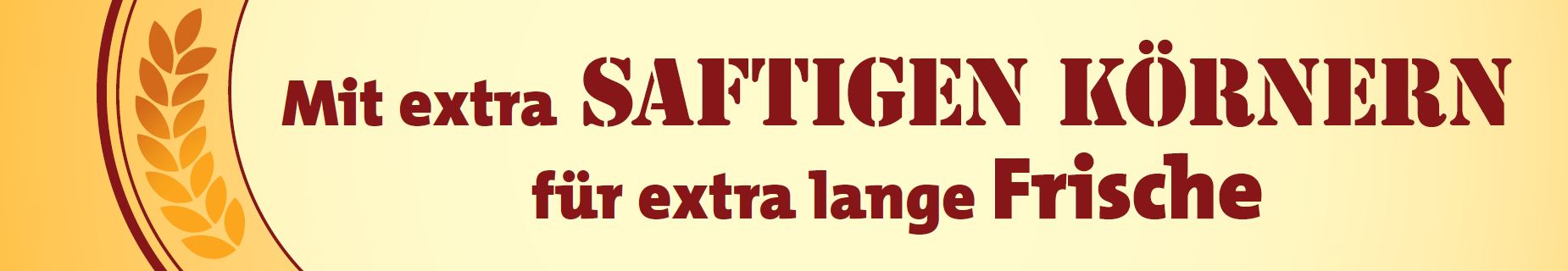 Regalstreifen mit Hinweis auf "extra saftige Körner" und "extra lange Frische".